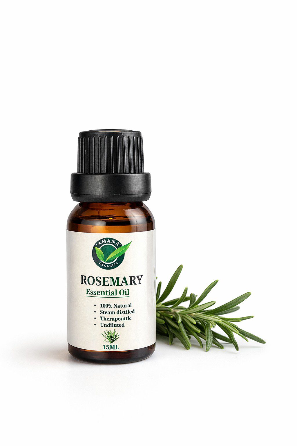 Amana Organics Rosemary Essential Oil is a premium-quality, steam-distilled oil extracted from fresh rosemary leaves. Known for its stimulating and strengthening properties, rosemary oil is widely used to promote hair growth, improve scalp circulation, and support mental focus.